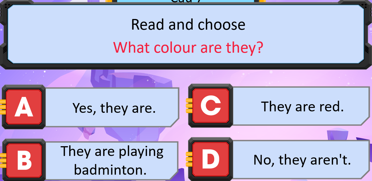 Cấu trúc: What colour are they?: Chúng có màu gì?
