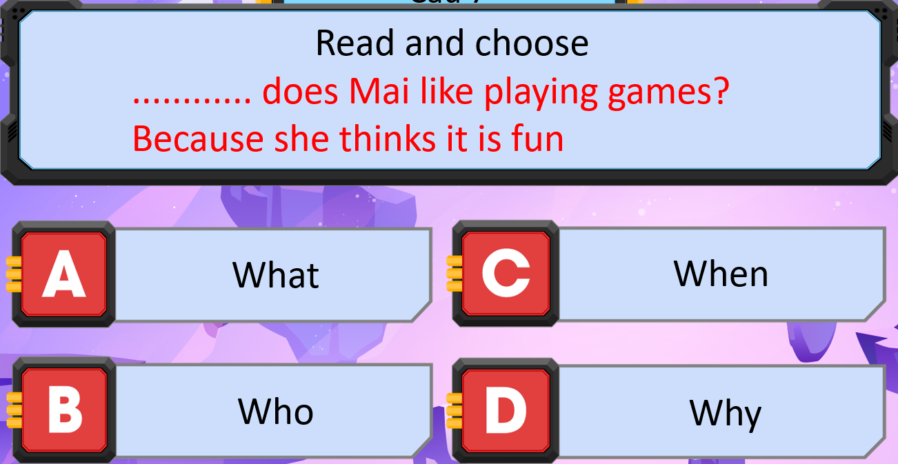 Giải thích: Why does Mai like playing games?: Tại sao Mai lại thích chơi game?